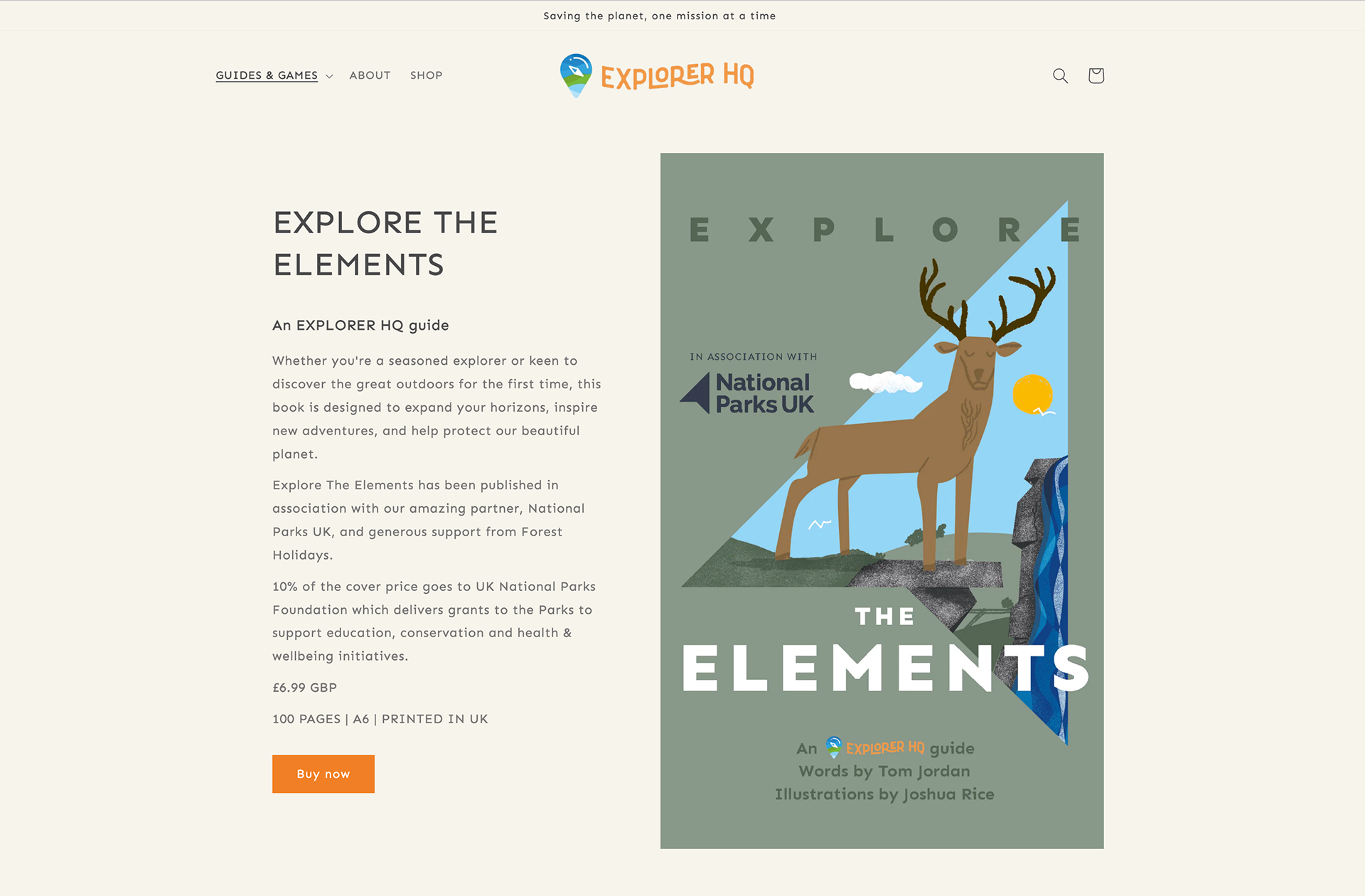 Illustration, brand and web design went into building this Shopify site - where Explorer HQ promotes its planet-friendly apps, books, games and guides for nature lovers aged 8-80